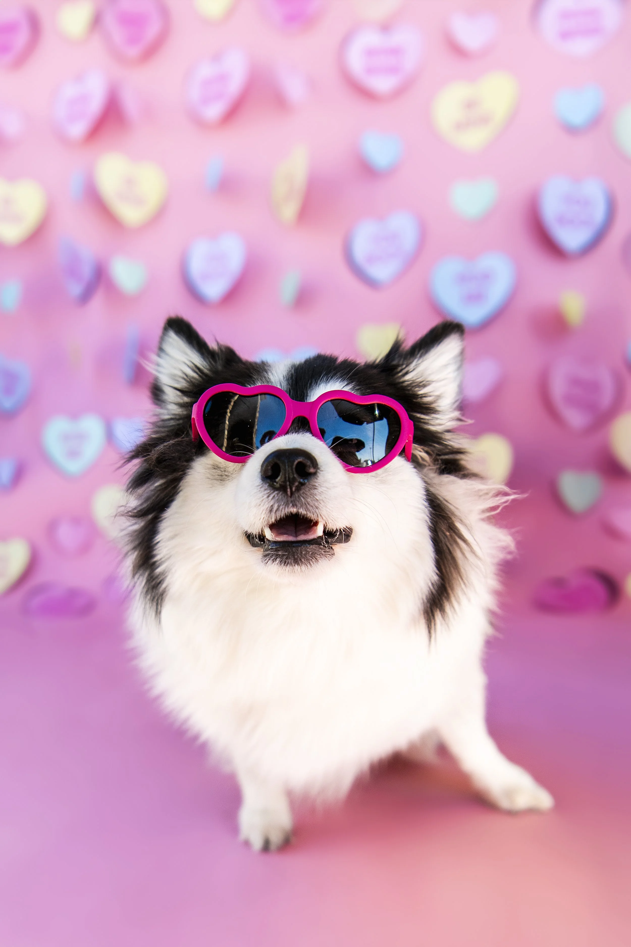 Valentine's Day is all about love, and that's exactly what we'll capture in each photo. From heart-shaped accessories to vibrant pink hues, these portraits are infused with the spirit of the season, radiating warmth, and affection. I loved creating this set! I purchased both the pink paper backdrop as well as the candy conversation hearts garlands on Amazon. It turned out so cute and I couldnβt be happier with how easy and simple it was to create.